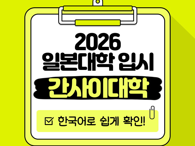 일본 유학을 준비할 때 가장 큰 고민은 입시 정보가 일본어로만 제공된다는 점일 겁니다. 하지만 이제는 걱정하지 않아도 됩니다. 2026년도 간사이대학 입시요강을 한국어로 정리해, 학생들이 보다 쉽게 이해하고 준비할 수 있도록 안내합니다.